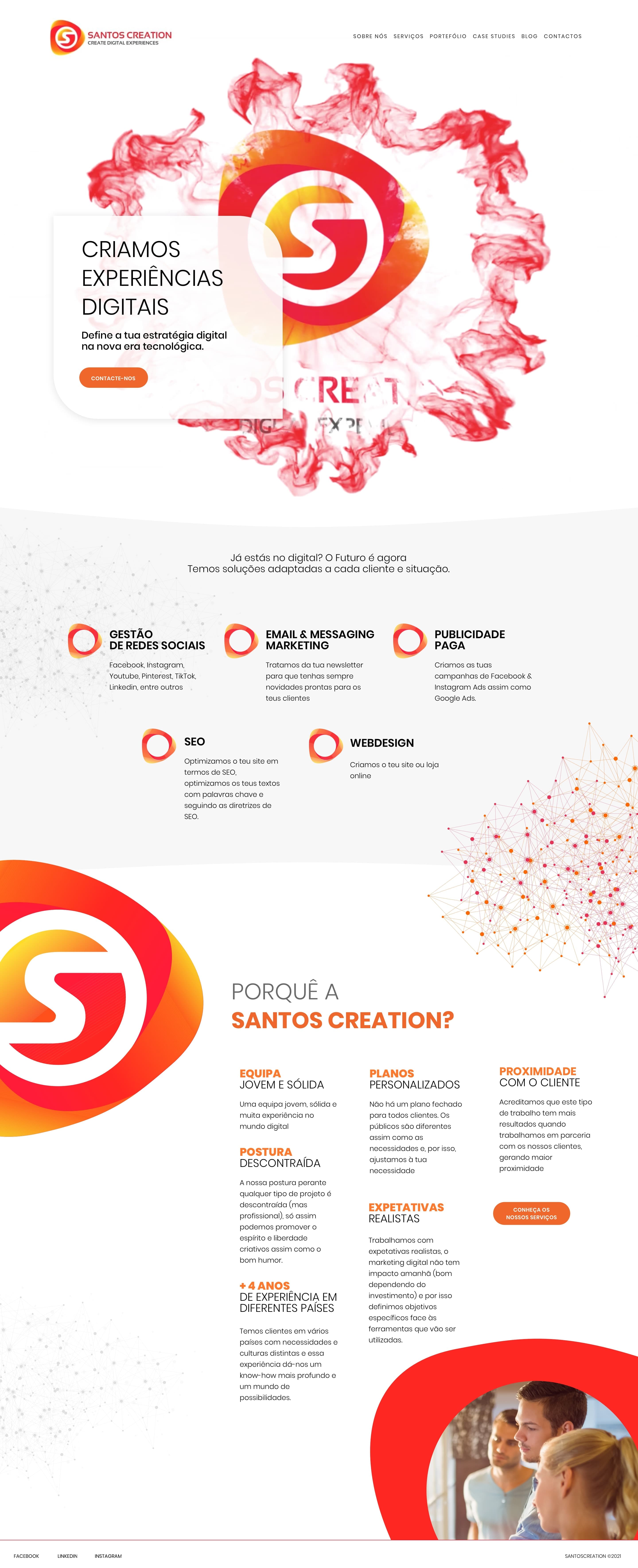 Descrição: Desenho de layout e desenvolvimento de website para agência de redes sociais.